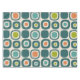 A retro-inspired grid of rounded squares, each cell featuring concentric shapes in teal, orange, chartreuse green, turquoise and beige. The outer dark teal squares anchor the composition, while the varied inner shapes add rhythmic contrast and visual warmth. Set against a soft beige background, the pattern evokes mid-century modern design with its bold colors, geometric repetition, and nostalgic charm—perfect for textiles, wall art, or vintage-themed decor.