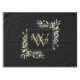 O verde impermeável aquarela deixa um tecido de mesa com o nome de monograma floral, apresentando um monograma inicial de ouro num fundo preto com o seu nome definido num guião na moda branco. Projetado por Thisnotme©