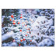Sparrows e um pombo pelo alimentador de pássaros no inverno. Árvores de Natal cobertas de neve decoradas com bolas vermelhas e azuis ao redor. Morro de Natal. Um pano de mesa chic. Não se esqueça de escolher outro tamanho do pano. Use o botão Personalizar para ajustar a imagem, se necessário (botão ajustado/preenchimento). Você também pode transferir este design para uma grande variedade de outros produtos, basta escolher um produto de uma linha abaixo. Divirta-se e seja feliz!