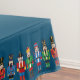 Um conjunto de três malucos diferentes marchando pelas margens desta toalha de mesa.
