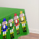 Um grupo de quatro nutcrackers coloridos diferentes que marcham em torno das margens deste tablecloth. Você pode facilmente mudar a cor do fundo.