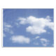 Nuvens brancas fofas estão espalhadas por um céu azul brilhante. A imagem transmite uma sensação de paz e abertura.