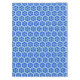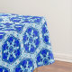 Tablecloth em um padrão geométrico de colmeia de flocos de neve em azul e branco de cobalto profundo, acentuado com turquesa
