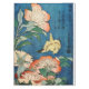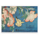 Imagem asiática do vintage que inclui peônias e um pássaro em um fundo azul