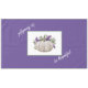 Lindo tecido de mesa do Dia de Ação de Graças roxo com uma abóbora branca com flores roxas bonito e brancas decorando uma área quadrada branca média. Seja grato que o texto branco possa ser personalizado para ler o que você quer.