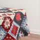 Design de Quilt Natal Gingham Whimsical em blues e vermelhos e esbranquiçados - Árvores de Natal, ornamentos e flocos de neve bonitos e com gingham e bolinhas como fundo para os quadrados. Um design de Natal favorito para fazendas e famílias de cabanas. Não há botões reais ou tecido de colcha nesse produto, ele é criado artisticamente para parecer uma colcha.