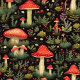 Whimsical mushroom illustrations with moss, ferns, and wildflowers