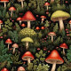 Whimsical mushroom illustrations with moss, ferns, and wildflowers