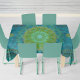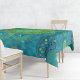 Fusão de técnicas Tantric e Lotus mandala representando a Terra e os elementos do ar. Esta mesa de algodão de 52" x 70" apresenta cores vibrantes verdes e turquesas que simbolizam a natureza e o ar, inspirando a consciência das mudanças climáticas. Feita nos EUA, esta toalha de mesa adiciona elegância e um toque de consciência ambiental à sua decoração.