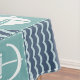 Um padrão inspirado na colcha de quadrados turquesas tempestuosos, decorados com um veleiro branco e âncora, e quadrados azuis marinhos profundos, acentuados com cavaleiros e ondas azuis paler, é acentuado pela costura branca para criar uma sensação náutica clássica.
