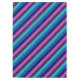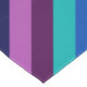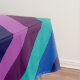 Uma mesa de 60" x 84" com um padrão colorido de faixas diagonais em azul legal, azul-oceano, azul-marinho, roxo de ameixa e lavanda.