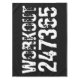 Texto vestido e arranhado Workout 247365 em cor branca com fundo preto. Perfeito para qualquer pessoa que esteja levantando, malhação, treinando, construindo carrocerias e indo para a academia.