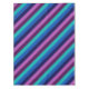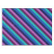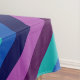 Uma mesa de 52" x 70" com um padrão colorido de faixas diagonais em azul legal, azul-oceano, azul-marinho, roxo de ameixa e lavanda.