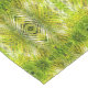 A mirrored repeating pattern inspired by the lush green leaves of palm trees, bathed in radiant sunlight, creates a captivating visual experience. This design showcases a harmonious symmetry that is both aesthetically pleasing and intricate. The arrangement forms a diamond shape, adding a unique sense of depth and texture, reminiscent of nature's own intricate designs. The vibrant green hues, highlighted by the sunlight, evoke a tropical paradise, bringing a refreshing and serene atmosphere to any setting. The interplay of light and shadow further enhances the dimensionality, making it a versatile choice for both modern and traditional decor. Made to instantly improve your tabletop and add the perfect touch of elegance to any room.