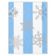 Um olhar encantador e elegante para sua mesa de inverno! Listras brancas e azuis em cores da época legal com flocos de neve prateados são adoráveis para qualquer ocasião! Procure guardanapos correspondentes também.