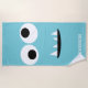 Os dois miúdos Eyed engraçados da cara do monstro personalizaram a toalha de praia azul. Personalize à cor do fundo da mudança da luz - azul a toda a outra cor. Personalizado com nome na pia batismal branca. Monstro eyed do bobo dois com dentes afiados. www.SamAnnDesigns.com
