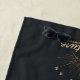 Uma toalha de praia com uma ilustração dourada em fundo de cinza preta. Projetado com uma ilustração de uma montanha com raios solares brilhando por trás. A tipografia diz: "A vida é uma descoberta de sonho de uma Aventura".