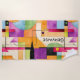 Um belo design abstrato com formas geométricas de aquarela de círculos e retângulos em violeta, laranja, azul e verde adiciona um toque adorável de sofisticação à sua praia ou tempo de piscina. Personalize com um nome em uma tipografia casual de estilo impresso à mão faz uma toalha excelente digna de praia!