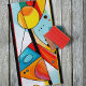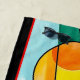 Um belo design abstrato com formas geométricas de círculos, linhas e retângulos com cores ousadas maravilhosas adiciona um toque adorável de sofisticação à sua praia ou ao seu tempo de piscina. Círculo amarelo brilhante, formas laranja e vermelha, formas azuis e turquesas, todas acentuadas com linhas pretas arrojadas, fazem uma toalha excelente digna de praia!