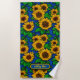 Toalha De Praia Adicionar Ouro de Nome Girassóis e Folhas em Azul