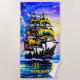 Pirata Marrom Estilizada Nave Azul - Veja mais toalhas de praia excelente na minha loja.