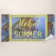 Aloha Summer. Bonito cena tropical durante dias quentes de verão. Aloha Summer é escrita em um roteiro de diversão amarelo ensolarado dentro de um quadro. O fundo tem um padrão ladeado com o céu azul e três palmeiras com frentes soprando na brisa oceânica. Legal para homens ou mulheres. Fotografia original e Design © TamiraZDesign.