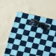 A blue and black checkerboard pattern with evenly spaced squares. The repetitive design creates a sense of symmetry and optical illusion.