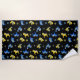 Esta toalha de praia tem uma design de arte folclórica sueca de animais de fazenda Dala, em cores azuis e amarelas da Suecia. Há um cavalo, galo e porco. Espalhado por todo o padrão está também alguma arte popular correspondente. Você pode tornar o padrão menor ou maior.