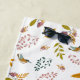 Pássaros, ramos e flores em fundo branco.