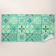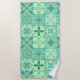 Toalha De Praia azulejos ornamentados em verde e branco