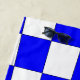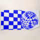 Padrão verificado em azul e branco. A ilusão óptica de uma esfera arredondada distorce os quadrados para curvar em forma de esfera.