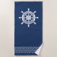 Esta toalha de praia de na moda apresenta um design de roda clássico num fundo azul de marinho profundo. Fabricado a partir de microfibra macia absorvente para conforto suave e secagem rápida. Perfeito para a praia, piscina ou lago.