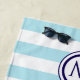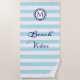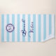 Adicione um toque de charme costeiro fresco ao seu estilo de praia ou piscina com esta toalha listrada personalizada. Apresentando riscas claras, azuis e brancas, esta toalha inclui o texto "Beach Vibes" no script do marinho náutico e um monograma personalizado dentro de um 'frame' ao estilo do retículo. Com seu design eterno e toque pessoal, é um presente pensativo para qualquer um que ama um olhar relaxado e inspirado no oceano.