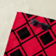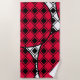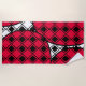 Esta toalha de praia tem um design moderno do século médio de diamantes negros sólidos com traços de diamante preto dentro com bolhas cor-de-rosa sob eles, todos num campo de branco.