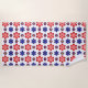 This beach towel features a beautiful colorful floral pattern of blue, purple and red stylized daisies against a white background; perfect for displaying retro cuteness and elegance while soaking up the sun.