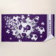 Esta legal toalha de praia temática de futebol apresenta uma "explosão" de diversas bolas e cinzas de futebol roxas e brancas de tamanho roxo num fundo roxo personalizável - um padrão de pequenas bolinhas, a estrela roxa - personaliza-se com o número de camisa do atleta no gráfico das bolas de futebol e o nome nas faixas brancas de varsias verticais - de katz_d_zynes
