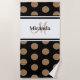 As bolinhas nunca parecem sair do estilo. Divertido, porém elegante, e o preto e branco inteligente com a dica de bege o torna ainda mais elegante. Personalize sua toalha de praia adicionando seu nome e nome inicial ou seu nome de família e inicial. Você também pode usar seu próprio texto. Seja criativo. Presente perfeito para você ou para a Bestie, tia, mãe ou avó.