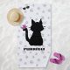 Aproveite esta toalha de praia fofinha com uma silhueta de gatinhos pretos brancos com uma borboleta rosa na cauda e as palavras "Puro" sobre uma pasta de cinzas de luz com fundo impresso Personalize-a, mude a cor branca de fundo para a sua favorita!