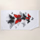 Bando de borboletas voadoras, realistas, vermelhas e pretas em fundo branco com gotas de tinta.