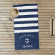 Tratem as suas damas de honra a estas toalhas náuticas de praia em chico, com listras clássicas, azuis e brancas, com uma ilustração branca de âncora e "colega de ponte" em letras brancas. Personalize com o nome de cada bridesmaid em letra de script de pincel manuscrito.