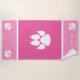 Design para amantes de cães e donos de cães com a pata branca de cães de Destei, imprimem silhuetas em uma cor de fundo rosa. Existe também uma área de texto personalizável para um nome, quer você queira que ele leia o seu nome ou o nome do seu animal de estimação, por exemplo. O meio tem uma grande forma de impressão de pata branca enquanto cada canto tem uma pata menor.