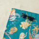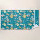 Duas lindas imagens de sereia se repetem no padrão desta toalha de praia, junto com um polvo, peixe, um cão de mergulho, e muito mais! O texto azul claro diz "Salty & Sweet". As imagens coloridas são colocadas sobre um fundo azul-oceano. Uma borda correspondente na parte inferior contém seu nome em script branco. Divertido!
