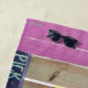 Bem-vindos à nossa ilha - propriedade privada. Realmente. Um cartaz de madeira rústico pintado e colorido, com instruções sobre o aluguel de kayak e de pranchas, o que fazer com a carga e onde estacionar. Um tema tão excelente da praia!