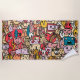 Cartoon Caracter-Hand Desenhou Toss Pattern Kids Beach Towel. Padrão colorido com diferentes personagens divertidos e divertidos desenhados à mão. Excelente para crianças.