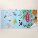 Esta toalha colorida de praia está repleta de vida, cheio de peixes incomuns e vida marinha, incluindo estrelas-vivas, peixes-espadilha, anêmonas-do-mar e um submarino vermelho brilhante. Perfeito para todas as idades.
