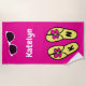 Design de praia brilhante e feliz apresenta ilustração de flutuação de sacudir com flores bonito e óculos de sol. Modelo fácil de personalizar com nome no meio e também adicionar iniciais à parte inferior dos chinelos.
