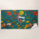 Toalha De Praia Cogumelos, folhas, loucos e bagas de outono, em az