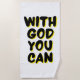 Esta design de toalha de praia tem as palavras "Com Deus Você Pode" em um estilo de bolha impressão mais letras negras e contornos de sombra amarelas com um estilo de tipografia neste tema baseado na fé. A frente desta toalha é uma mistura de poliéster, a parte traseira é 100% de algodão com uma vibrante impressão de sublimação, que é projetada para durar. Aproveite esta toalha para o próximo piquenique, praia getaway ou qualquer atividade ao ar livre que você possa assistir todas as toalhas são laváveis por máquina com roupa seca e baixa velocidade recomendada.