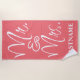 Toalha De Praia Coral e White Sr. e Sra. Monograma