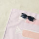 Esta doce toalha de praia apresenta ilustrações de doces taffy da água salgada. As ampolas de cor pastel são colocadas sobre um fundo cor-de-rosa claro. Esta toalha está pronta para ser personalizada com um nome. Seu texto personalizado aparece em letras brancas no pedaço de doce rosa inferior.